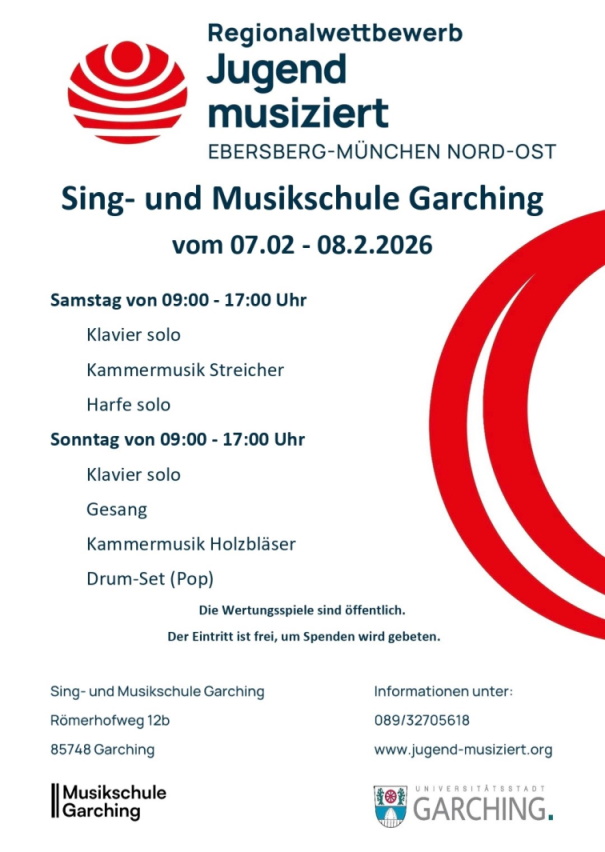 unter der 089/32705618 oder per Mail info@musikschule-garching.de zu folgenden